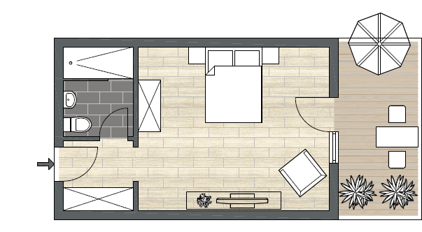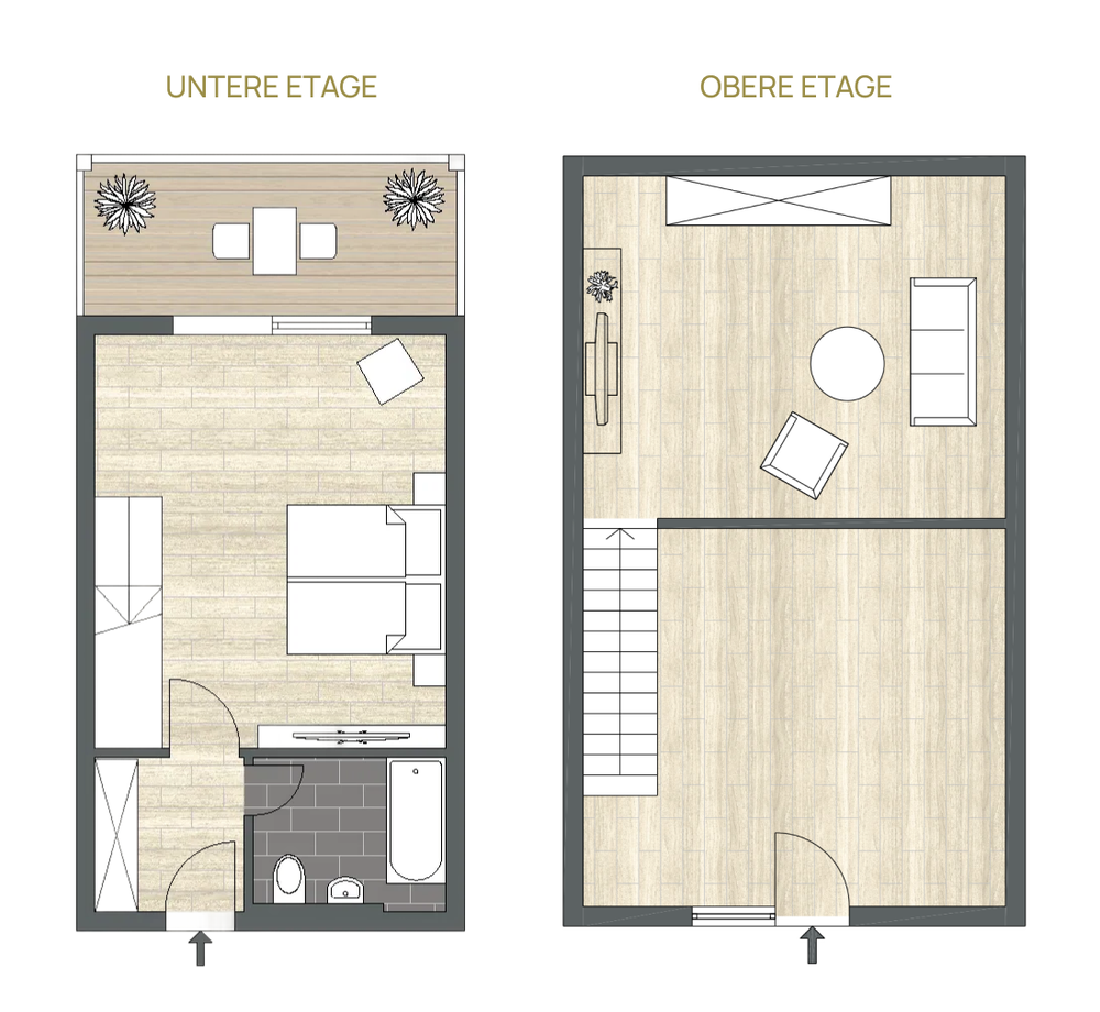 Die Doppelzimmer Superior Terrasse bestechen durch eine moderne Möblierung, die ein stilvolles und gemütliches Ambiente schafft.