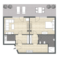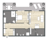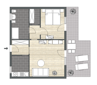 • getrennter Wohn- und Schlafraum