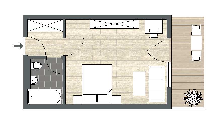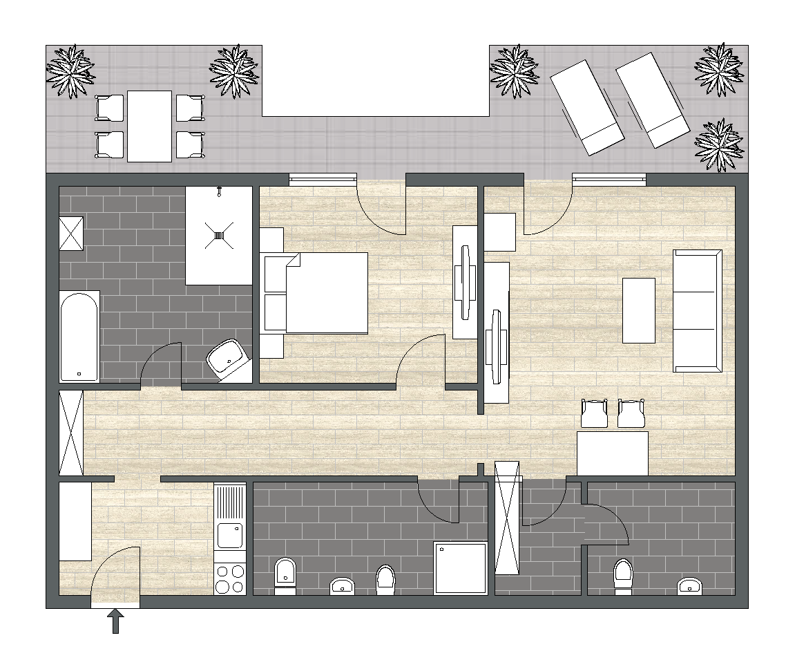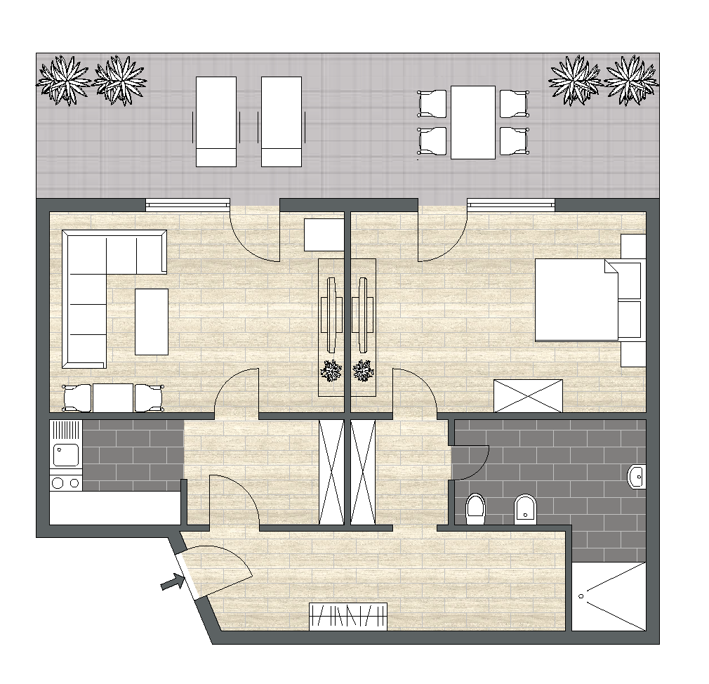 Die Doppelzimmer Superior Terrasse bestechen durch eine moderne Möblierung, die ein stilvolles und gemütliches Ambiente schafft.