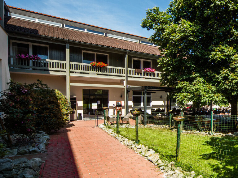 Die Rustikalsuite bietet einen eigenen eingezäunten Garten zur Alleinnutzung mit direktem Zugang zu unseren Außenanlagen. Genießt die Sonne auf den Terrassen, deine Zweibeiner können auf bequemen Sitzmöbeln und Liegestühlen die Seele baumeln lassen.
