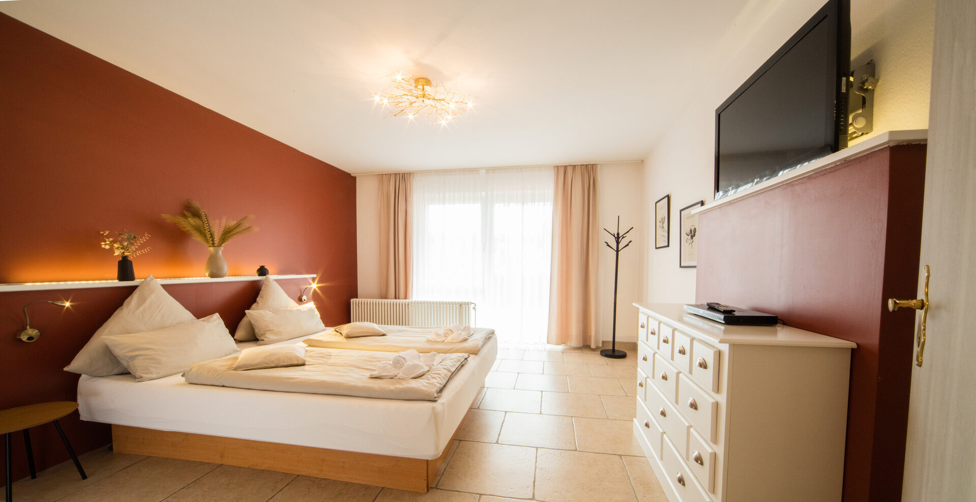 Der Wohn- und Schlafraum der Suite sind getrennt, was viel Raum und Privatsphäre bietet. In beiden Räumen befinden sich Flat-TVs, damit deine Familie ihre Lieblingssendungen oder Filme auch während eueres Aufenthalts bei uns nicht verpasst.