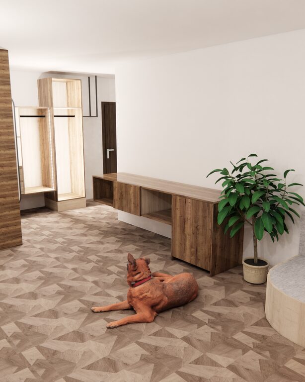 Die Suite ist in einen Wohn- und Schlafraum geteilt, was euch ein Höchstmaß an Komfort und Privatsphäre bietet. Der Fliesenboden verleiht der Suite ein modernes und stilvolles Ambiente. Die gemütliche und individuelle Möblierung sorgt dafür, dass ihr euch wie zu Hause fühlt. Im Wohnzimmer erwartet deine Zweibeiner eine große Couch, auf der sie sich entspannen können. Für ihre Unterhaltung steht jeweils ein Flat-TV im Wohn- und Schlafzimmer bereit, damit sie ihre Lieblingssendungen oder Filme genießen können.