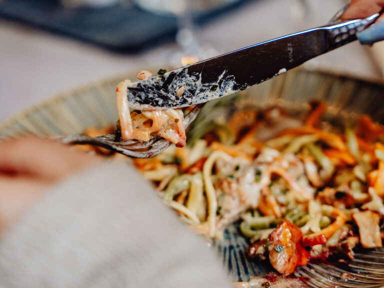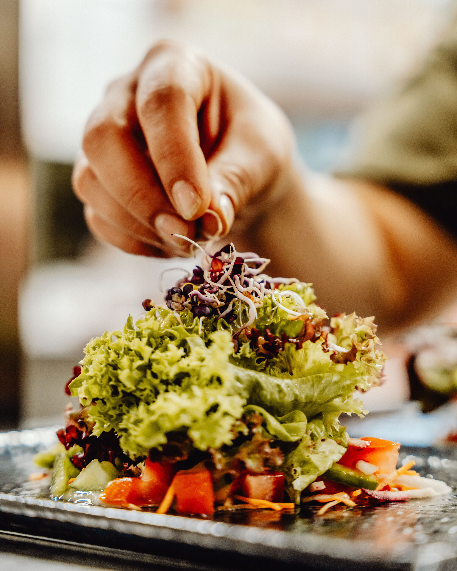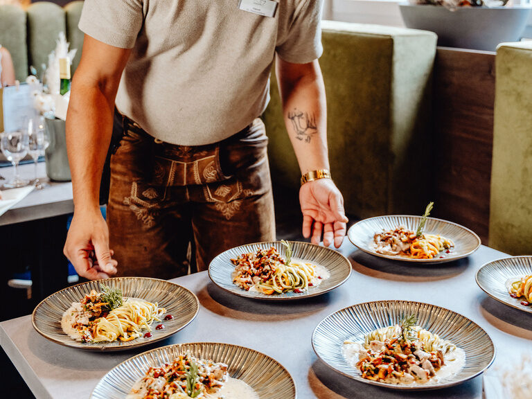 Mittags wird’s lecker-leicht mit kleinen warmen und kalten Happen vom Buffet und frischen Salaten – perfekt für eine kurze Pause zwischen Toben und Kuscheln.
